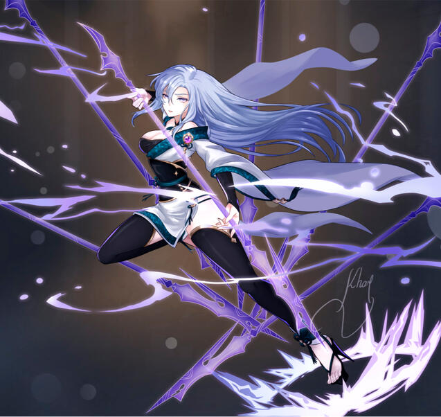 "It’s your fault!"Blaming her for the loss of his beloved wife, her father’s grief slowly transformed into madness, leaving him consumed by rage. At the age of 12, Eliza felt the first strike of his anger. It marked the beginning of years of physical abuse, his fists and kicks growing increasingly violent as time passed. Her body became as scarred as her soul, a constant reminder of the man who was supposed to protect her.When Eliza turned 16, she could no longer endure the torment. Fleeing from her father, she sought refuge in Inazuma City, where she found a new sense of purpose within the Tenryou Commission.Starting as a simple recruit, Eliza’s determination pushed her to train harder than anyone else. Over the years, she fought her way through the ranks, eventually achieving the title of General by the age of 23. During this time, she also earned the favor of the Shogun Raiden, securing an Electro Vision in recognition of her strength and loyalty.Though she understood the Shogun's difficulty in interacting with others, Eliza always strove to serve her and the Commission to the best of her ability. However, her strong moral compass often clashed with the treatment of non-natives in Inazuma. Unable to stand by, Eliza frequently challenged or questioned orders she disagreed with, a stance that left her with few allies within the Commission.After another year of service, Eliza sensed something monumental was coming—a change that would shake Inazuma to its core. Recognizing that she may not be able to fight against it or endure what was to come, she made the difficult decision to leave the Tenryou Commission and Inazuma behind.Packing only her most essential belongings, she boarded the next ship leaving the islands, embarking on a journey that would take her across all of Teyvat.Over the course of five long years, Eliza traveled to every corner of the world, honing her blade skills and perfecting her control over her Electro powers. Yet, throughout her travels, the Fatui continued to follow her, relentlessly pursuing her for reasons she could not understand. For some unknown purpose, they wanted her dead, her head to be delivered to the Tsaritsa herself.